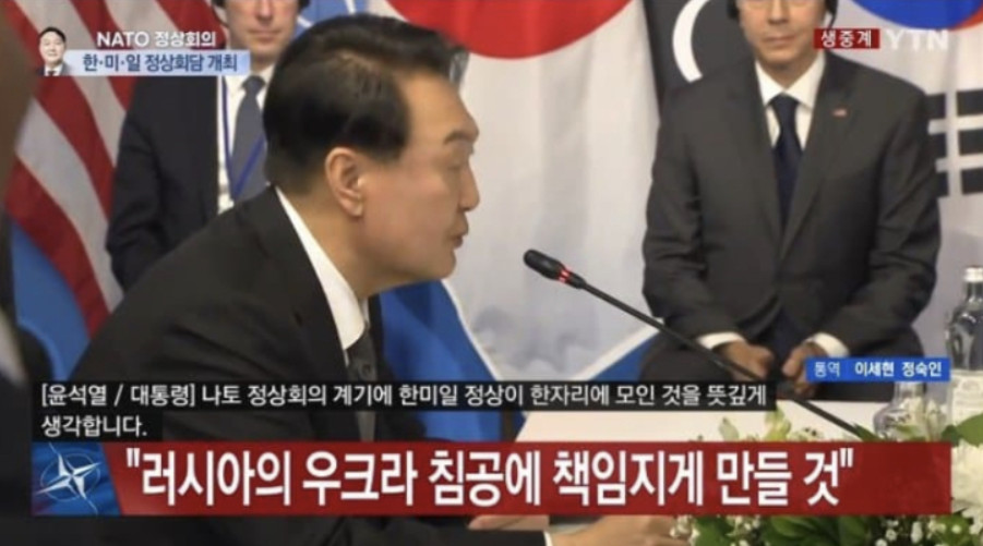 나토행사 공식 사진에는 눈감은 굥의 사진이 올라와 있다.