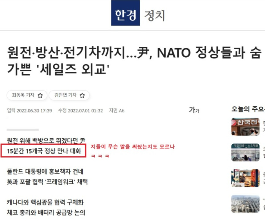 한국 언론 쪽지만 보고 있는 굥을 편집해서 올렸지만 다른 나라 언론까지 통재는 못하잖아..