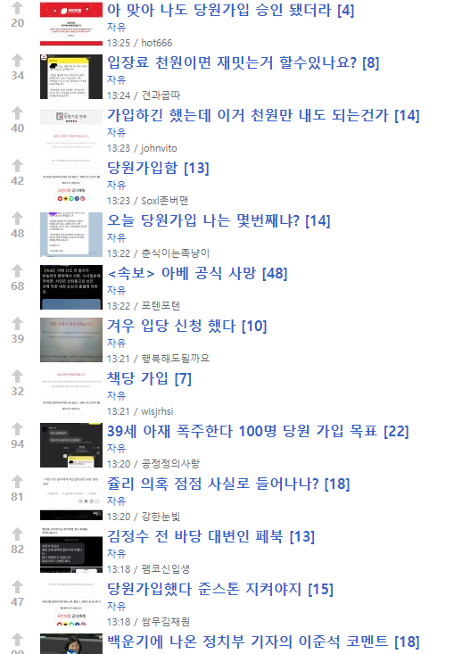 난리난 팸코에서도 당원 가입 글이 올라오네..