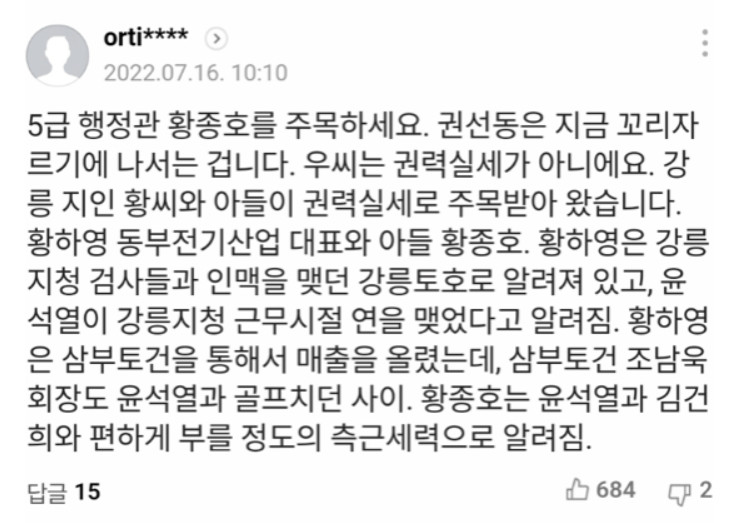 기자들도 황종오 5급에는 침묵으로 권성동을 옹호해주지만 네티즌이 가만 두지 않는다.