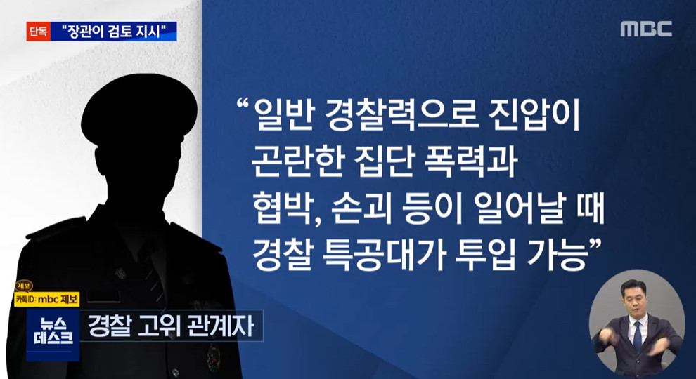 대우조선해양 하청노조 파업 협상이 타결되기 3일 전, 이상민 행정안전부 장관이 경찰 수뇌부 회의를 주재한 자리에서 경찰특공대 투입을 검토하라고 지시했다는 증언이 나왔습니다.