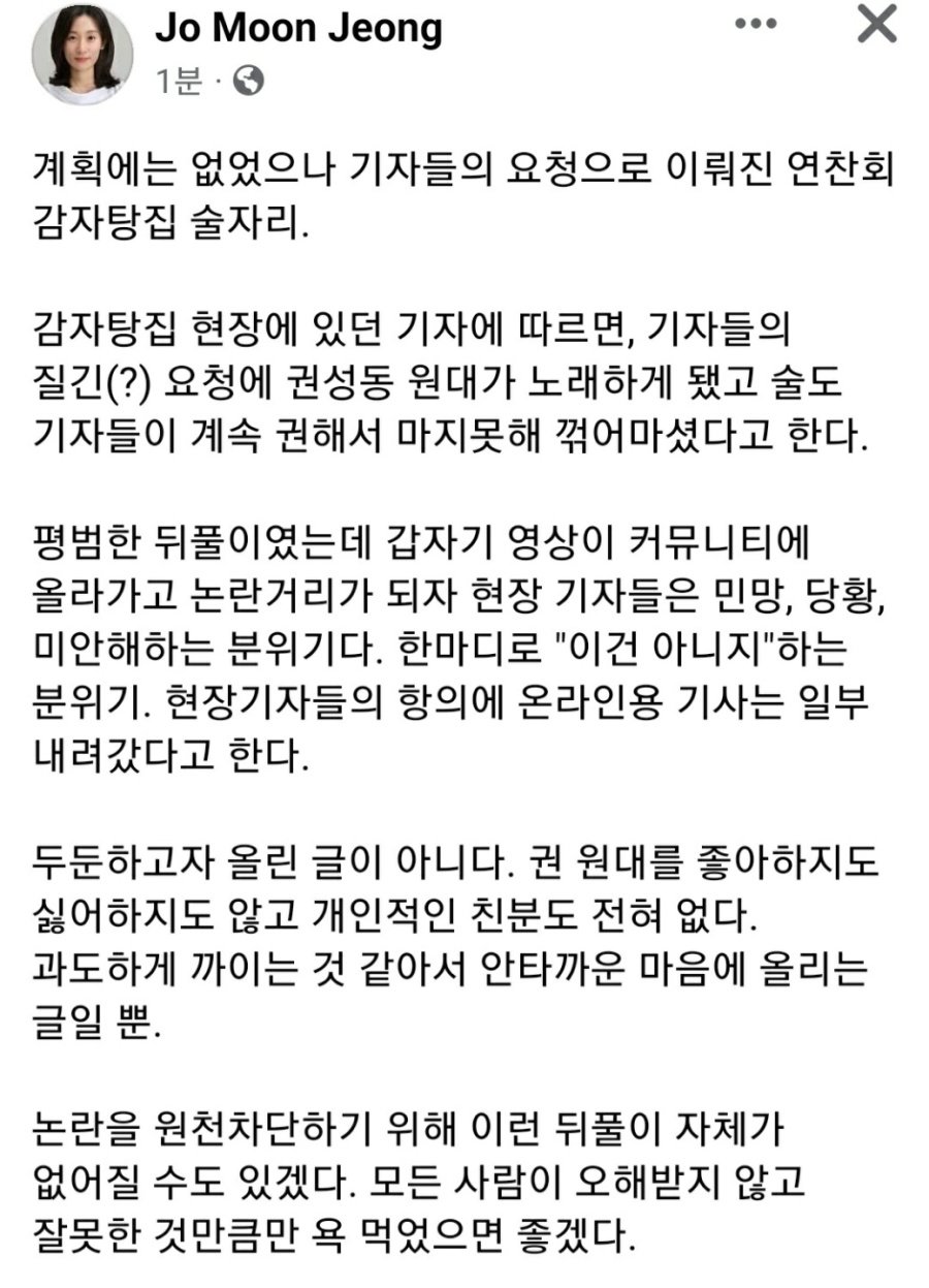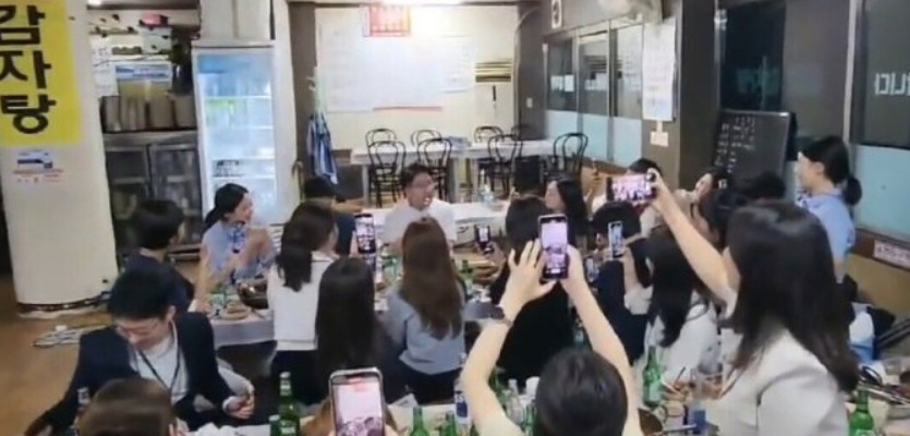 감자탕집... 여기자들 사이에서 노래부른 권성동과