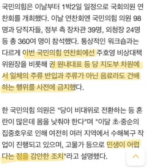 어제 술자리는 국힘 공보국에서 마련한 치킨집 호프집 감자탕집 등 네 곳과 각 의원들이 따로 잡은 게릴라성 술자리가 있었음