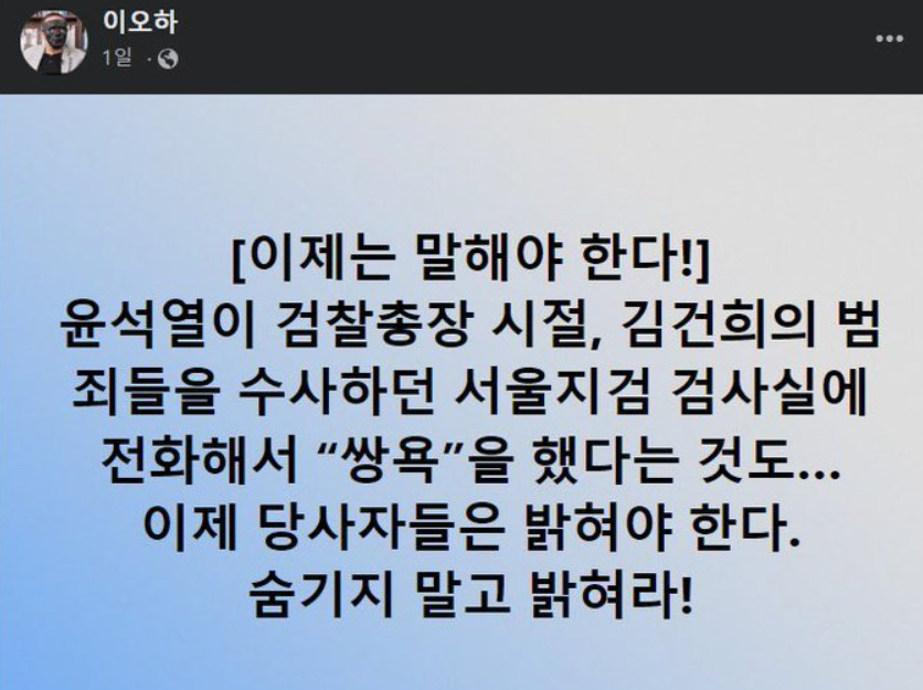 | [더탐사] [청담동 룸바1] 첼리스트 남자친구 녹취 전문, 한동훈 술자리 윤석열,이세창 김앤장 함께 (4) | 2022.10.25 |