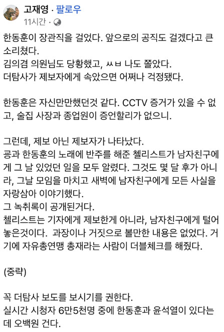 [청담동룸바2] 윤석열 한동훈 이세창을 공격하는 소위 청담 게이트 제보자입니다 트위터