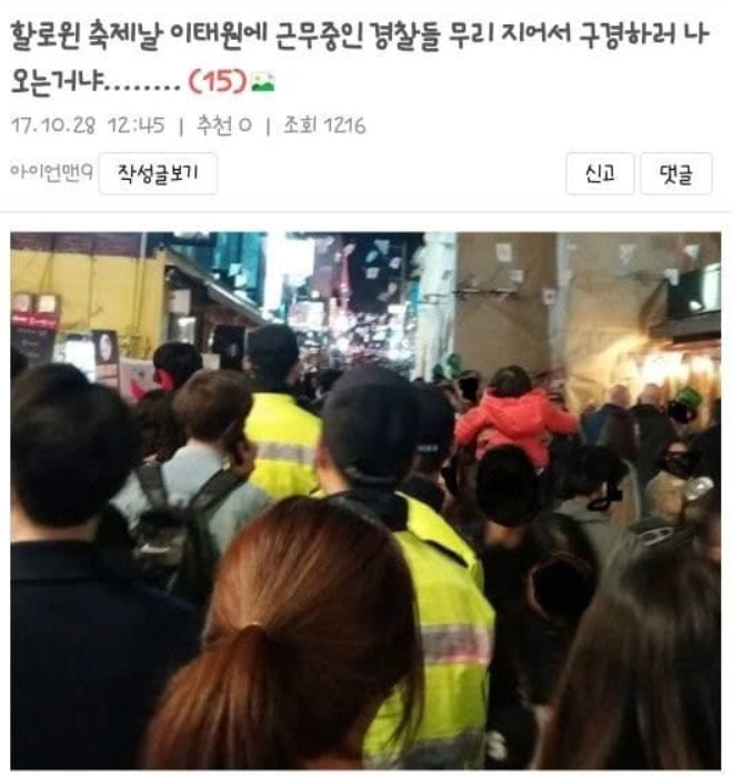결과론적인데 일방통행 같은 축제 참가자 동선 통제는 경찰이 아니더라도 안전요원 알바나 공무원을 투입해서 서울시에서도 할 수 있지 않나?