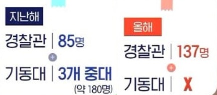 경찰청이 처음 발표 할때 작년보다 더 많은 인원이 투입 되었다고 했는데 기동대 3개중대 약 180명은 슬쩍 눈가리고 발표를 한거다. 진짜 국민을 엿같이 본다.