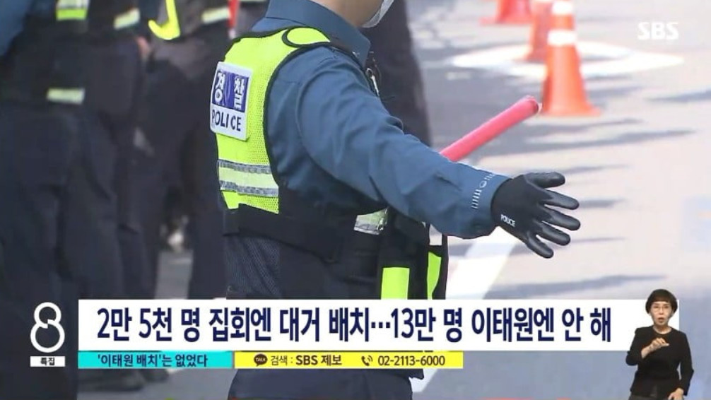 기자를 동반한 마약사범 검거장면을 연출함에 있어 야광복 입은 질서유지경찰은 방해가 된다 질서유지경찰이 많으면 마약사범들이 그 거리에 별로 없다 보배드림에 올라온 이 글이 이태원참사