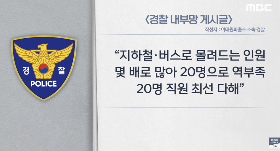 mbc 단독/ 이태원참사 4일 전 "지원 절실" 거듭 요청‥나온 건 '교통기동대 1대'