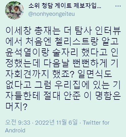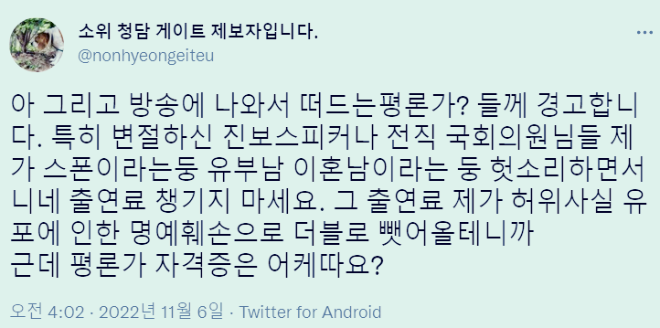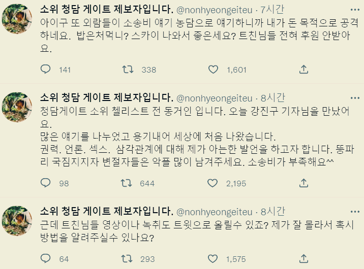 소위 청담 게이트 제보자입니다. (@nonhyeongeiteu) / 트위터