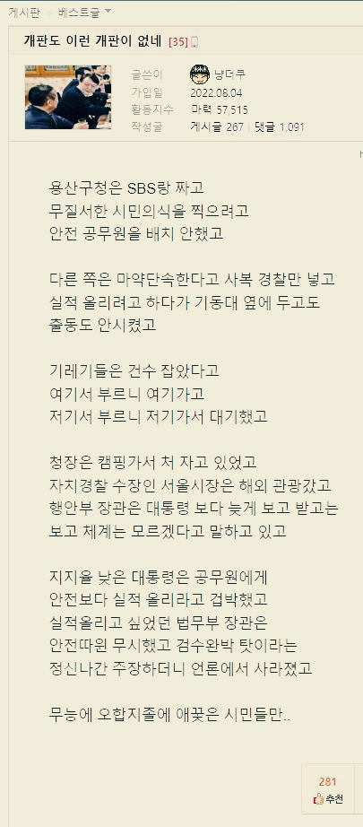 보배드림에 올라온 이 글이 이태원참사가 일어난 배경을 한번에 알려준다.