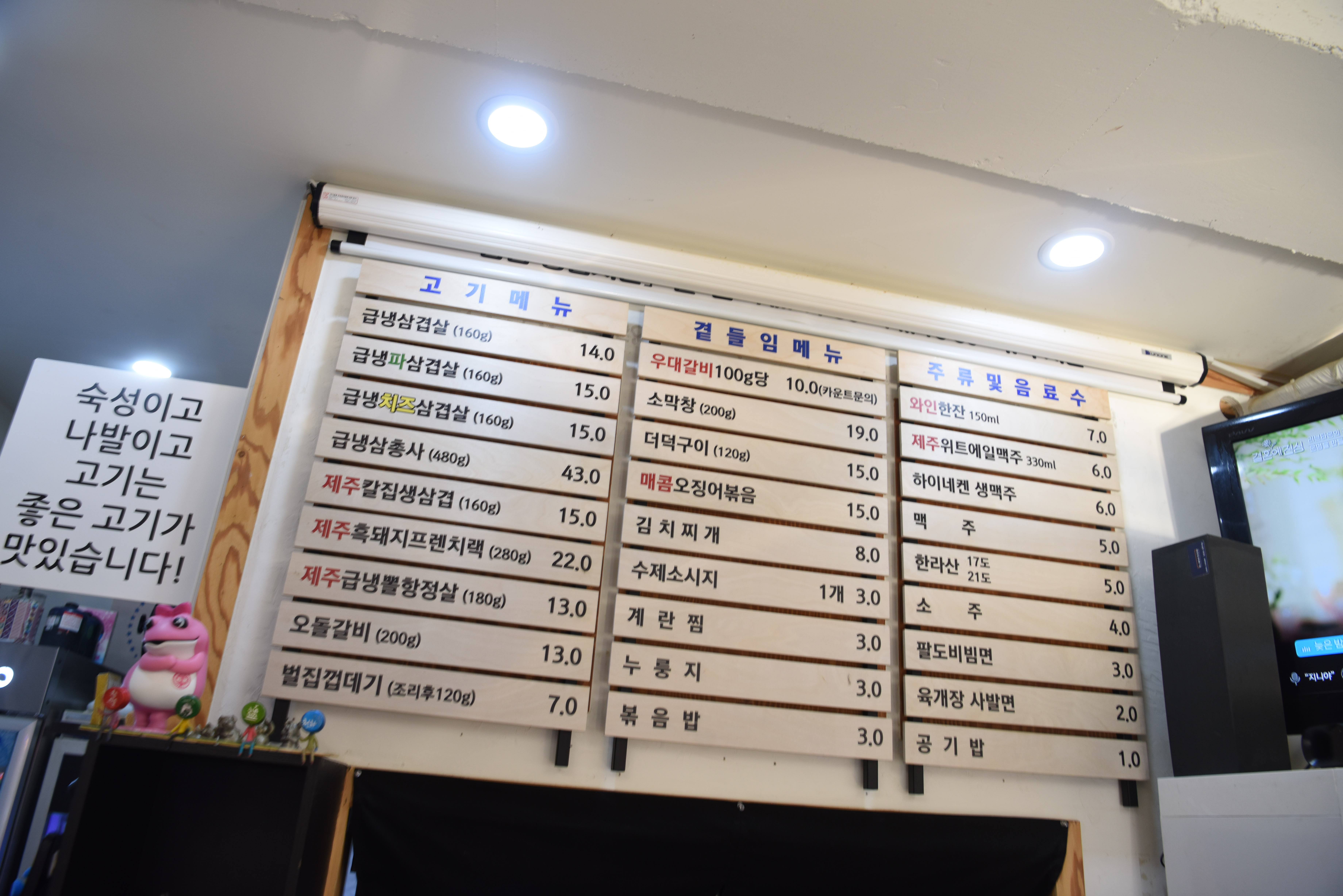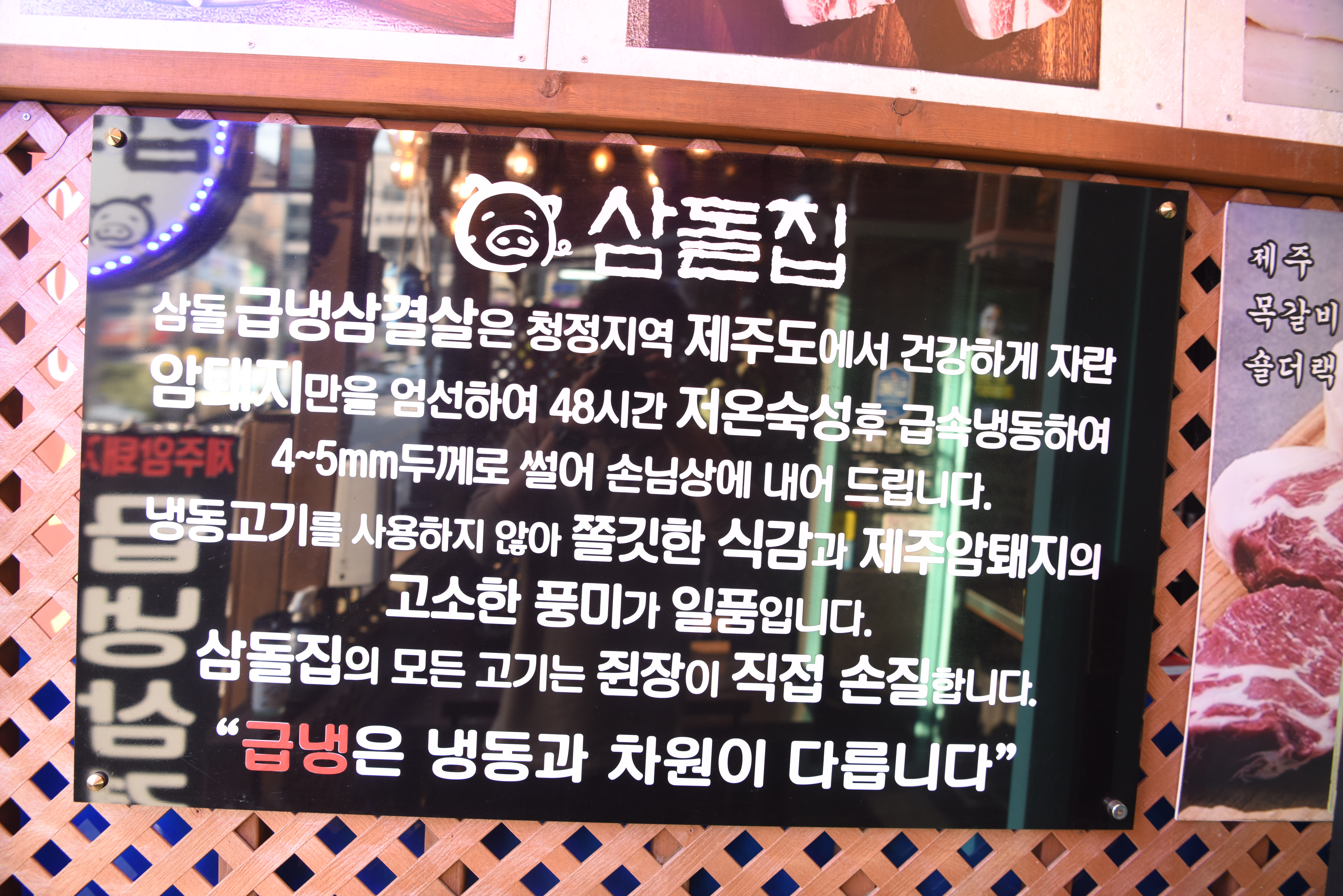 급냉삼겹살에 파 삼겹, 치즈삼겹 등 젊은 입맛에 맛는 새로운 메뉴가 보이네