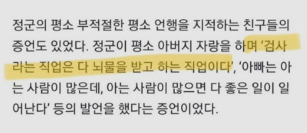 집안에서 꺼리낌없이 뇌물 먹은 이야기를 밥상머리에서 했다는 것인지...