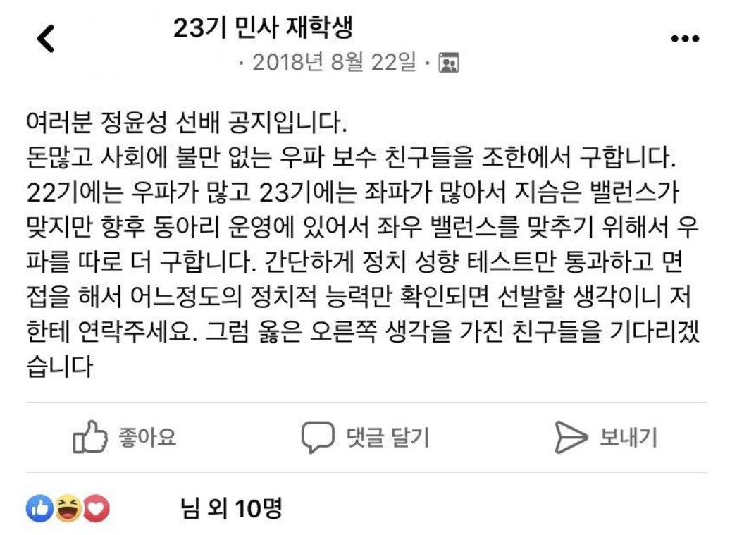 이미 민사고때는 우파 감별사로 활동 중이었네요