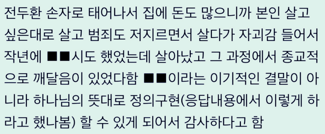 저의 죄와 고통에서 벗어나기 위해 극단적인 선택까지 했었다.