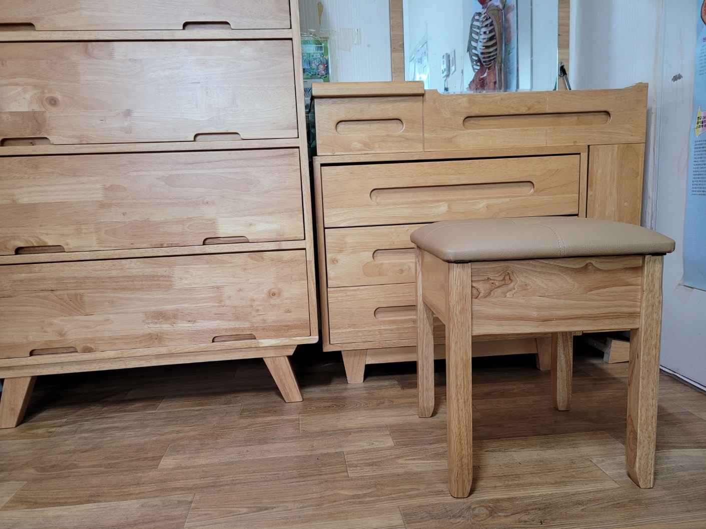 화장대도 내츄럴 색상이고 서랍장도 내추럴 그러니 내추럴로 통일했어요.