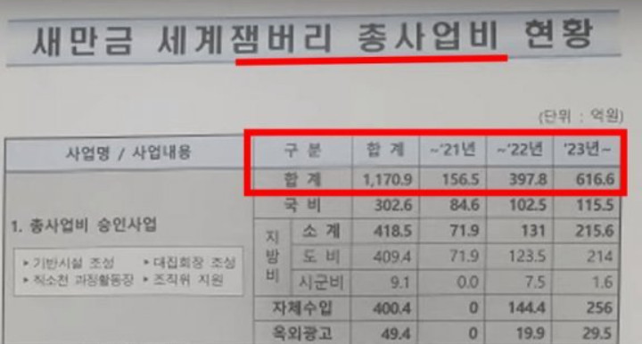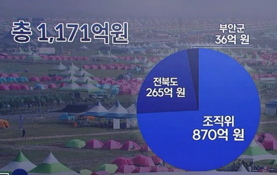 총 1,171억 원 중에 전북도는 265억 원, 부안군은 36억 원 쓴 반면에 조직위는 74%에 해당되는 870억 원을 사용했습니다.