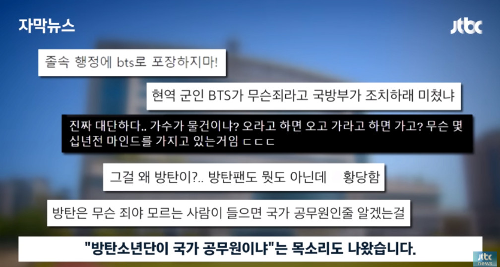 성일종은 나라를 위해 방탄을 가진 국방부는 협조하라고 윽박지르고, 가수들은 마구 차출 중입니다.