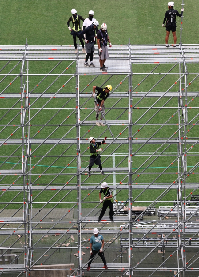 며칠전 부터 무대설치를 이렇게 하고 있습니다.