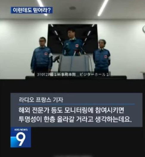 안전하다고 말하는 한국정부와 원전 찬성론자들은 일본 정부를 믿어라 한다.