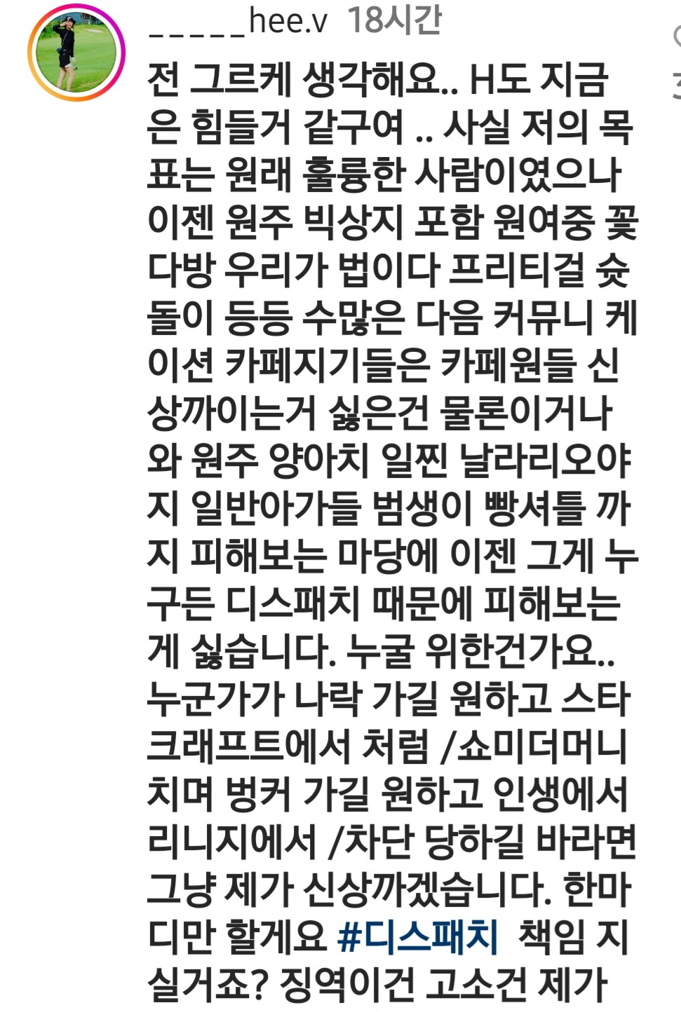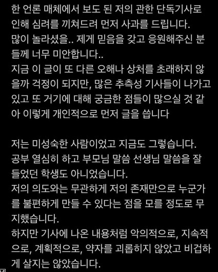 그런데 만약 이것 뿐이고, 디스패치가 밝히지 않은 고등학교 생활이 만약 아무 문제가 없었다면 현재 김히어라에 대한 비난 수위는 과하지 않을까요?