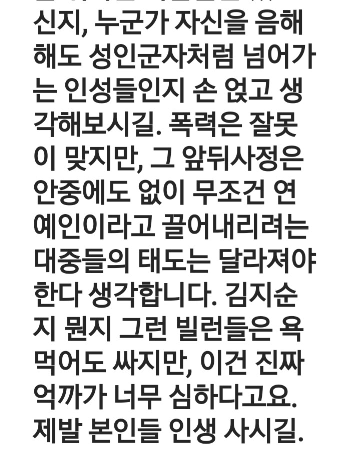 4. 가해자는 더 나오지 않는데 오히려 도움 받았다는 옹호자글은 나오기 시작한다.