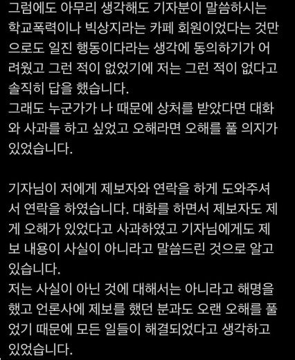 2. 디스패치 제보자와는 오해도 풀고 사과도 받았다.