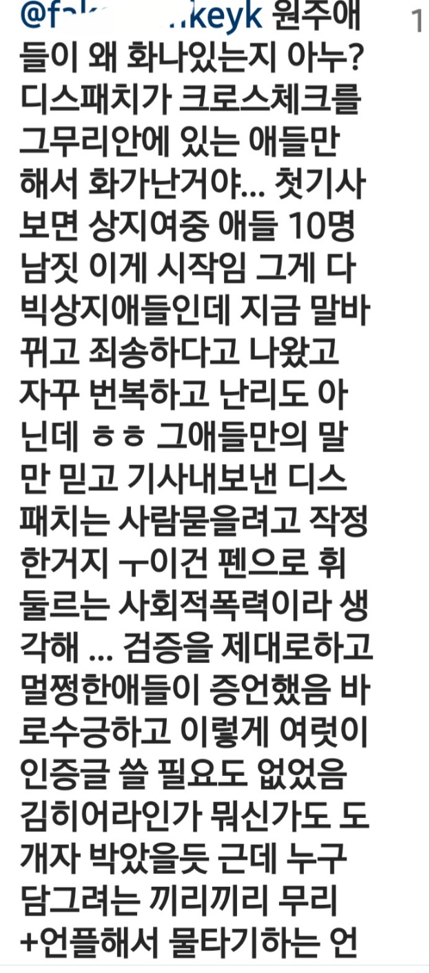 반전에 반전 연일 폭로가 나오고 연일 기사들이 업데이트 되는데 아직도 디스패치 첫 기사만 첫 녹취만 보고 욕하는 이들이 넘칩니다.