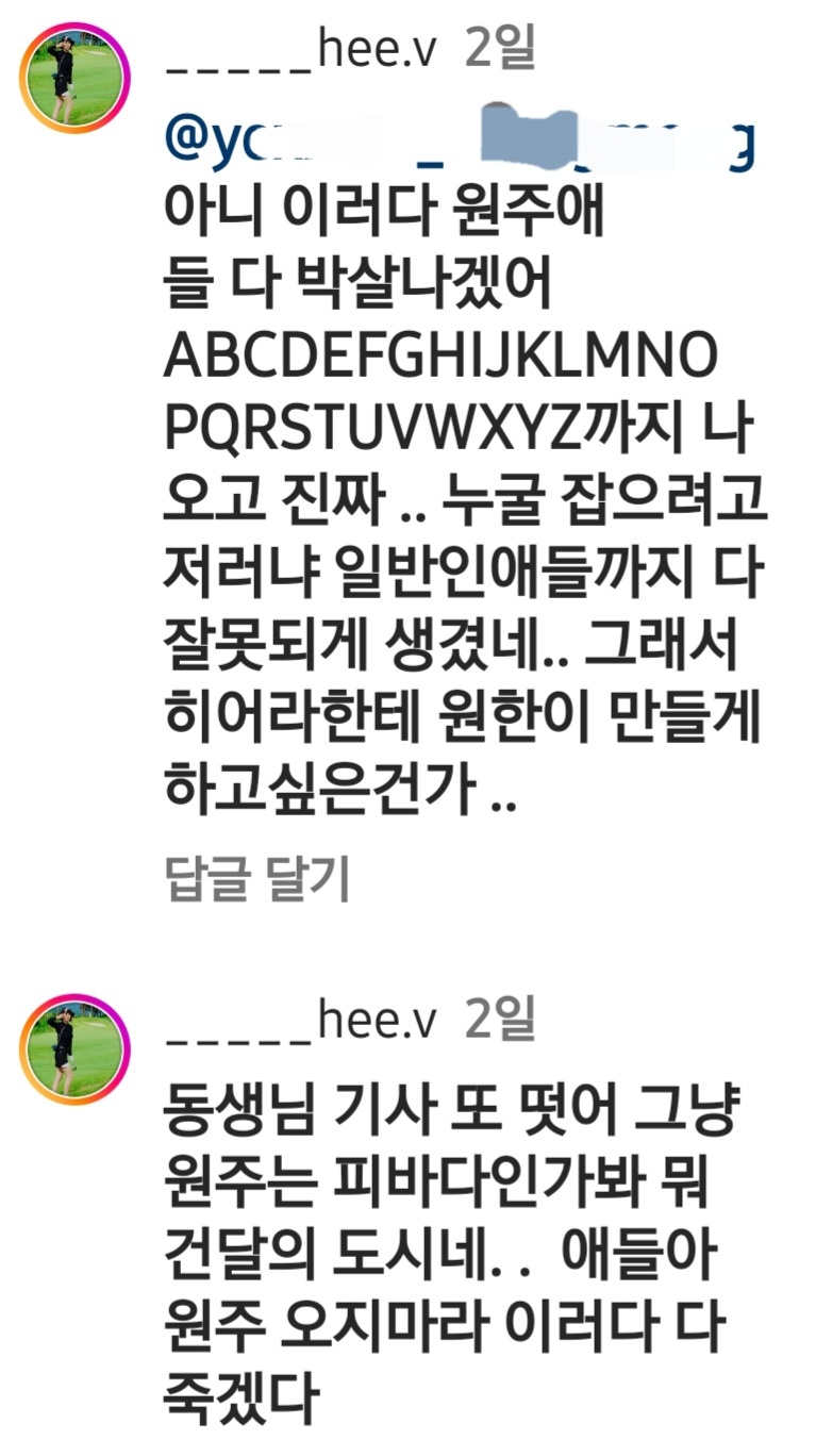 난 원여중 나온 김희영 농고 다니다 그만두고 공고 재입학 한 김희영 08학번 상지대 김희영인데 신상 까고 말하자면 김히어라 솔까6진정도??