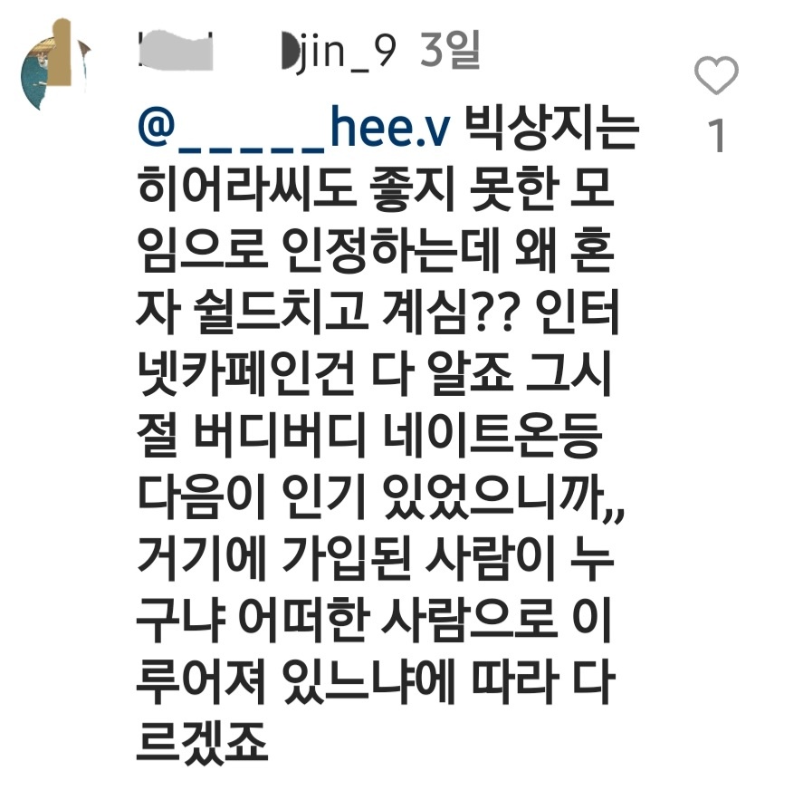 빅상지에 대해 김히어라에 대해 글 남긴 동창생