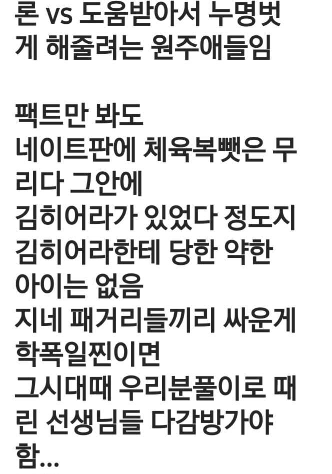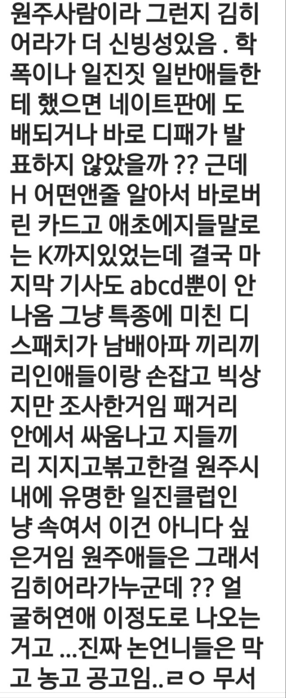 김히어라는 패거리가 없었다 한다면 H패거리가 김히어라를 집단 폭력 했을겁니다.