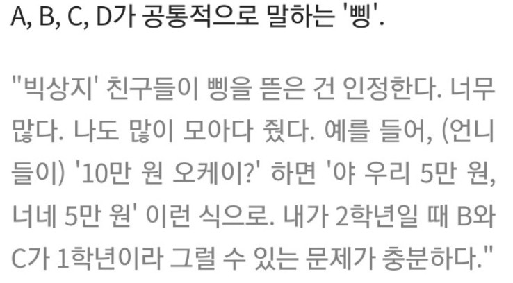 카페 가입 했다는 사실은 디스패치에 나왔던 부분이고, 자긴 폭력도 삥뜯는 것도 일진 활동도 한 적이 없다는 말도 기사에는 있었죠.다만 "일진 클럽에 가입 했는데 그걸 누가 믿어" 하는 뉘앙스가 강했습니다.