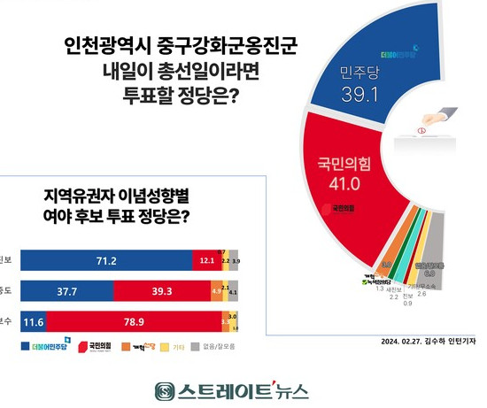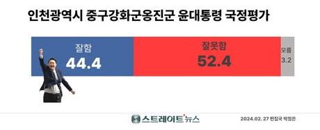 인천 중구·강화·옹진은 대체적으로 국힘당 강세지역인데 윤석열 지지률이 상당히 좋지 않네