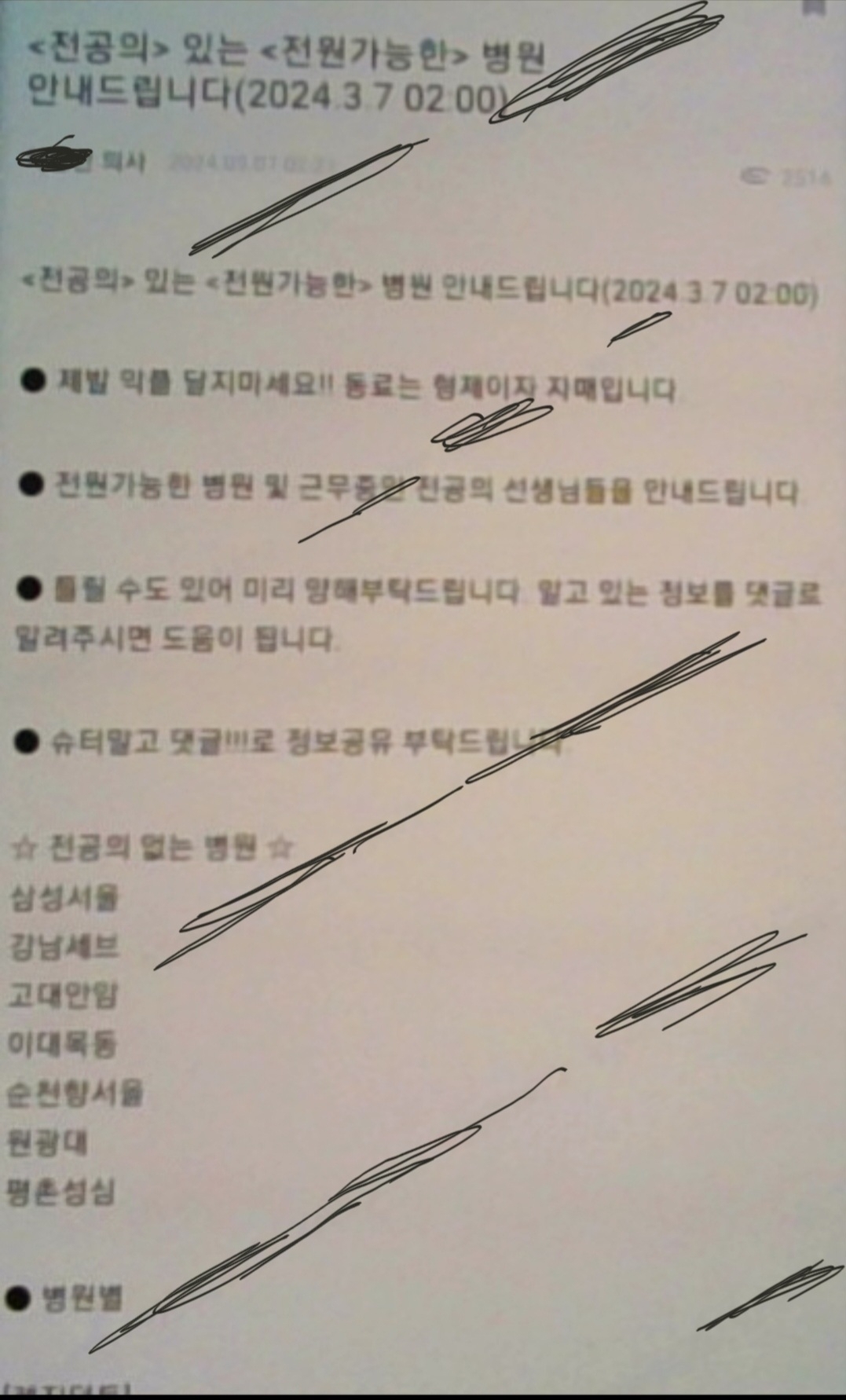 제가 올린 뒤 문제가 됐는지 처음 참의사 목록은 삭제가 됐는데 전원가는 병원이라 이름만 바꿔서 올리네요.