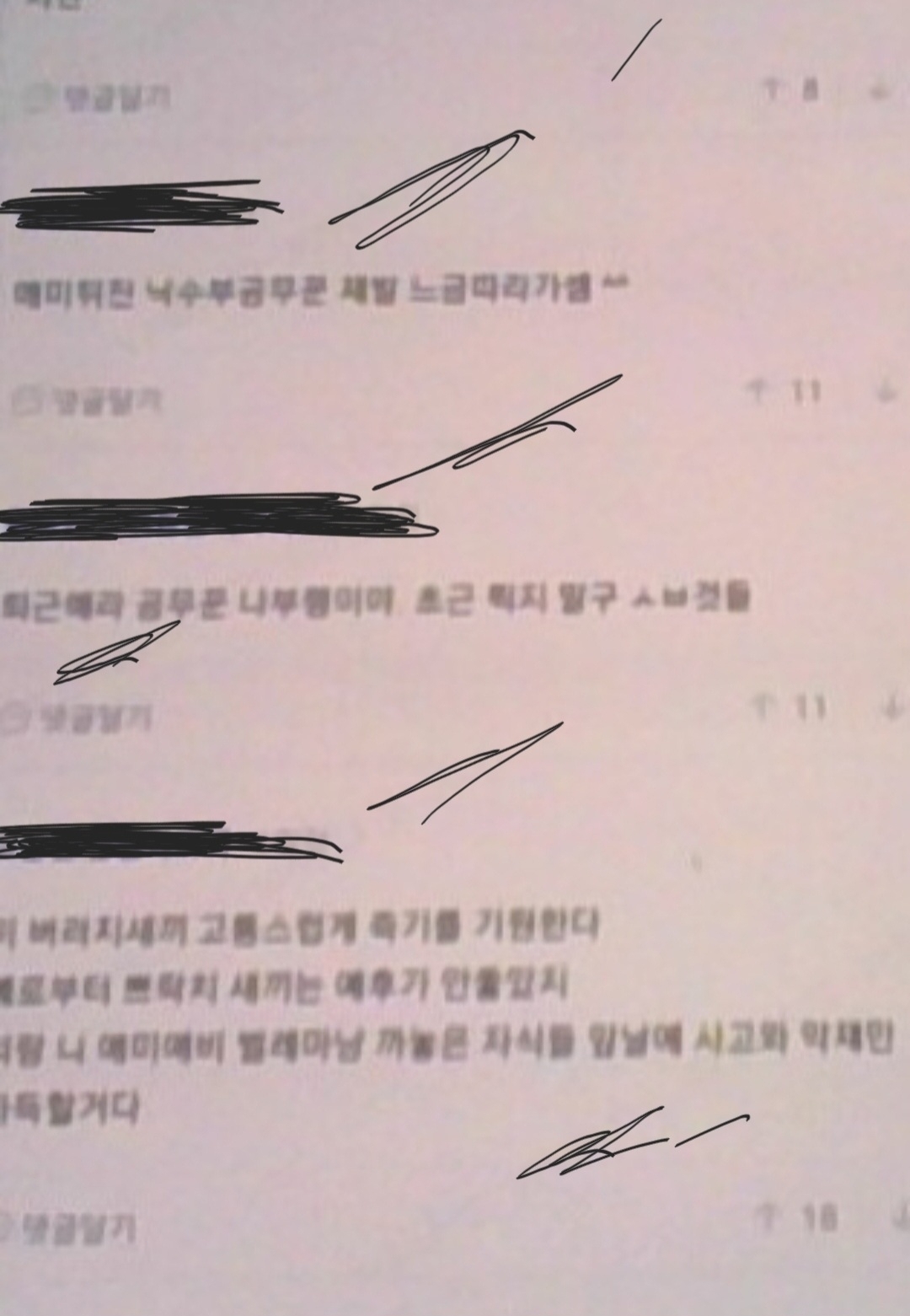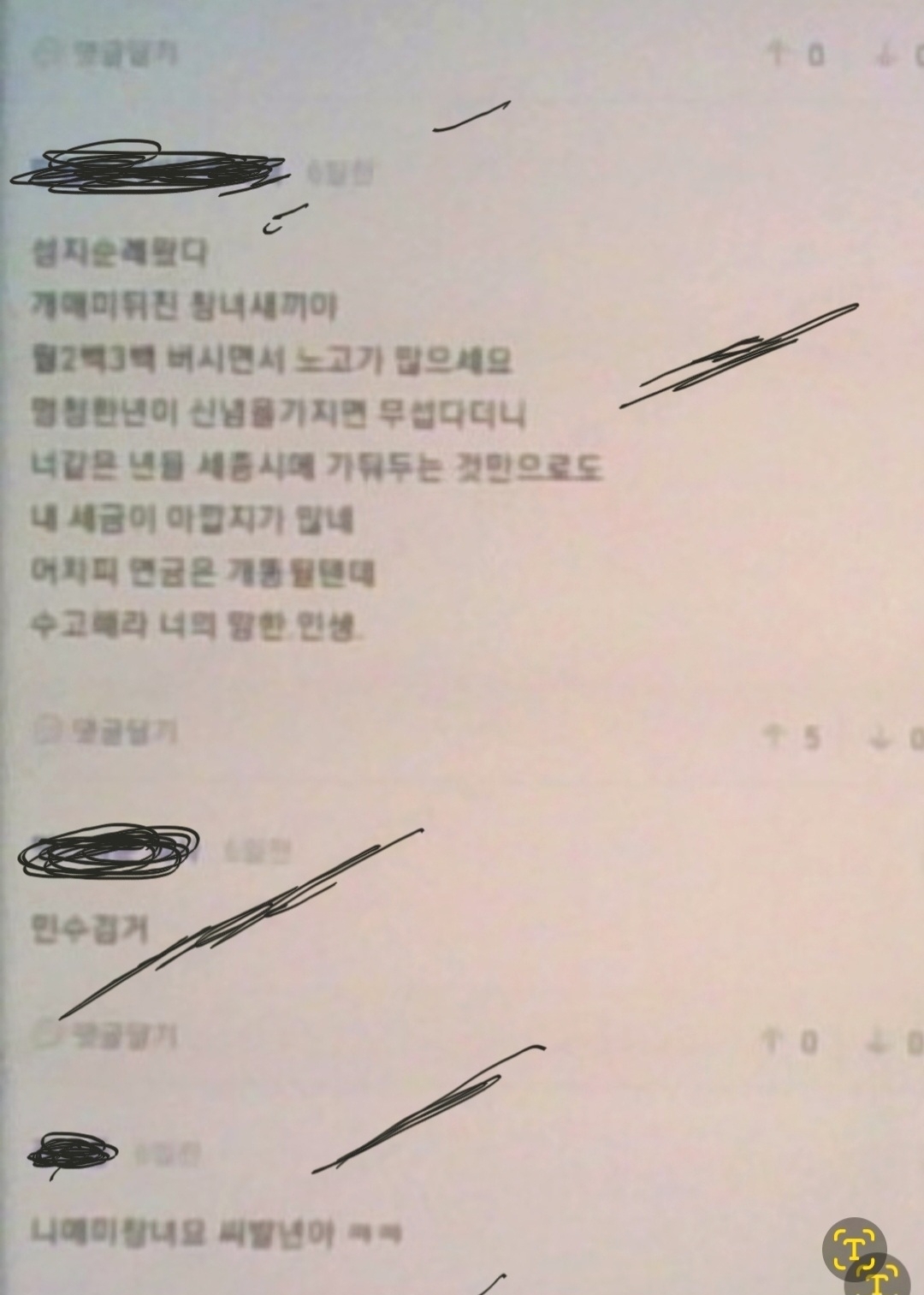 "개애미뒤진 창녀새끼야"