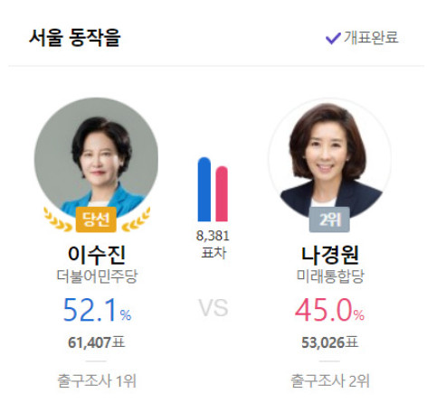21대 총선에서 나경원을 상대로 이수진이 압도적 승리를 거두지도 못한 곳이 동작을인데 지금은 그때와 판도도 다르다.