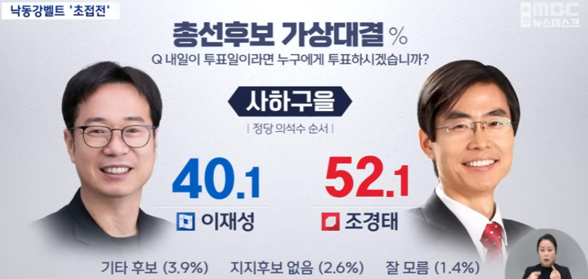엔씨소프트 전무를 지냈고 새솔테크 대표인 IT전문가 민주당의 이재성이 과연 조경태를 이길수 있는 그림을 볼 수 있을려나, 워낙 지지기반이 강력한 조경태지만 이 지역의 젊은 인구 유입도 예전과 다르게 많아져서...