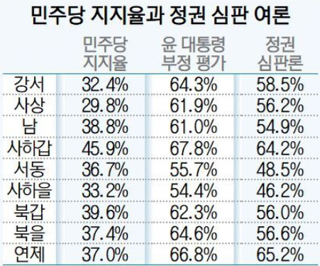 윤석열의 부정평가가 높고 정권심판론도 높지만 민주당이 제대로 흡수하지 못하고 있다.