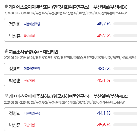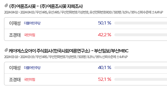 [22대총선]부산 여론조사2/ 연제구, 서구동구, 부산진갑, 중영도,기장, 해운대갑을