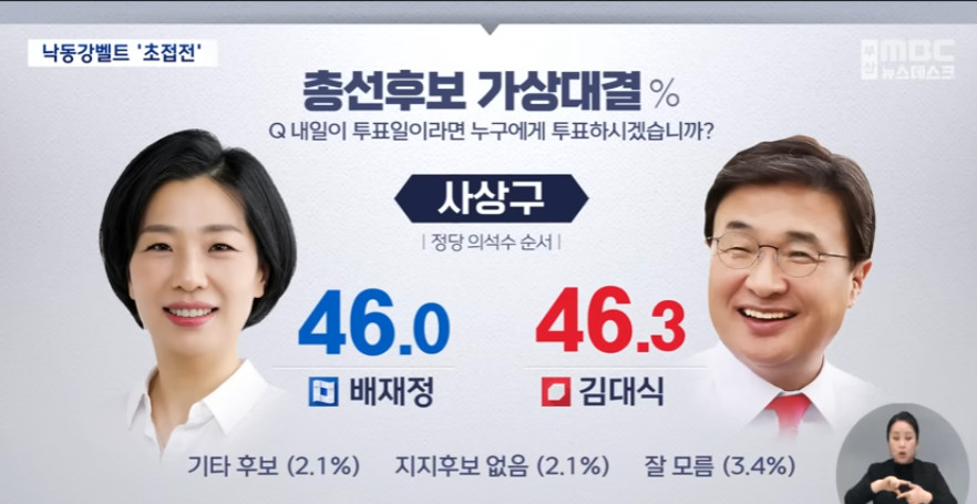 | [22대총선]동작을 여론조사 나경원 류삼영 / 동작갑 김병기, 장진영 (2) | 2024.03.12 |