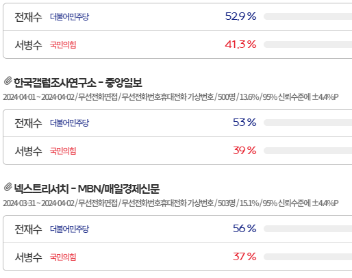 | [22대총선] 충남 여론조사/천안 갑을병, 공주부여청양, 보령서천, 아산갑을,선사태안, 논산계룡금산,당진,홍성예산 (0) | 2024.03.28 |