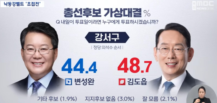 부산에서 20~40대 인구가 50대 이상 인구보다 많은 기초지자체는 강서구가 유일한데 젊은 층의 지지율은 변성완이 앞서고 있다. 즉 젊은 층의 투표율이 관건이다.