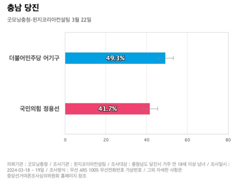 더불어민주당 어기구 후보 49.3%, 국민의힘 정용선 후보 41.7%