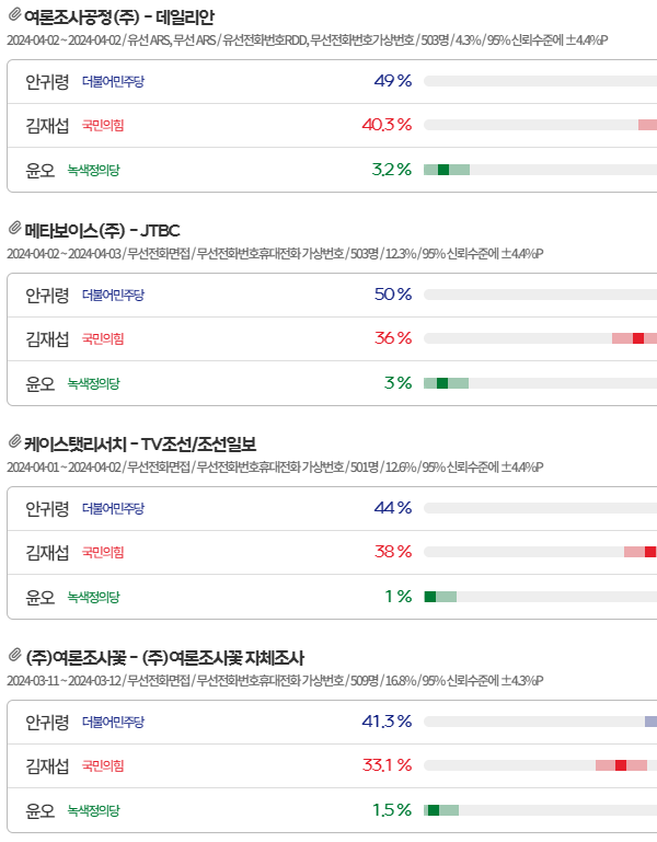 | [22대총선] 충남 여론조사/천안 갑을병, 공주부여청양, 보령서천, 아산갑을,선사태안, 논산계룡금산,당진,홍성예산 (0) | 2024.03.28 |