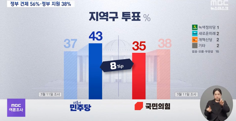 현재 각 여론조사를 보더라도 민주당이 우세다 부산까지 흔들리고 울산 경남도 여진이 세다. 물론 대구 경북은 굳건하지만. 여기에 강원도까지 흔들리면 국힘당은 100석 근처도 힘들다. 여론