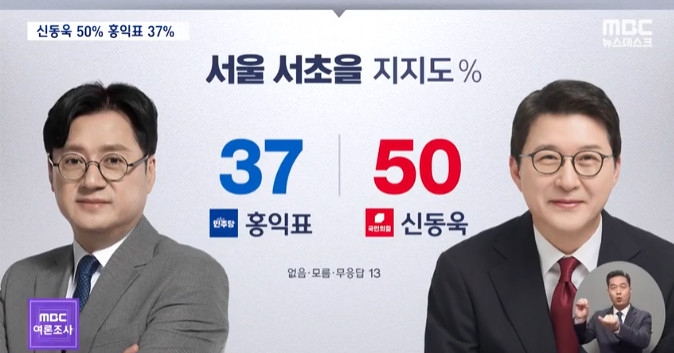 민주당 홍익표 후보 37% 국힘당 신동욱 후보 50%