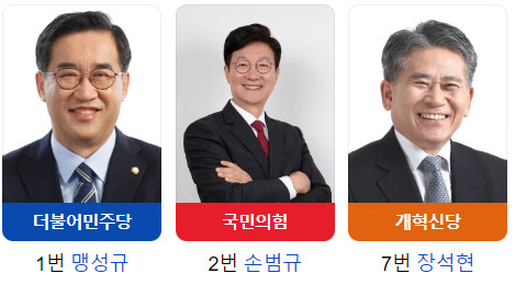 민주당 맹성규 후보 50.3%, 국민의힘 손범규 후보 34.8%, 개혁신당 장석현 후보 2.8%