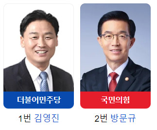 25일/ 민주당 김영진 후보 50%, 국민의힘 방문규 후보 34%