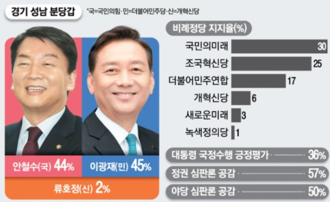 여기서 봐야 할 것은 비례정당 지지율이다.
