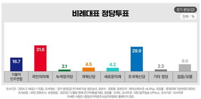 | 22대 총선 여론조사 모음 서울,부산, 충청남북, 대전,세종, 경기도,인천 /조국혁신당 광풍이분다. (1) | 2024.04.02 |